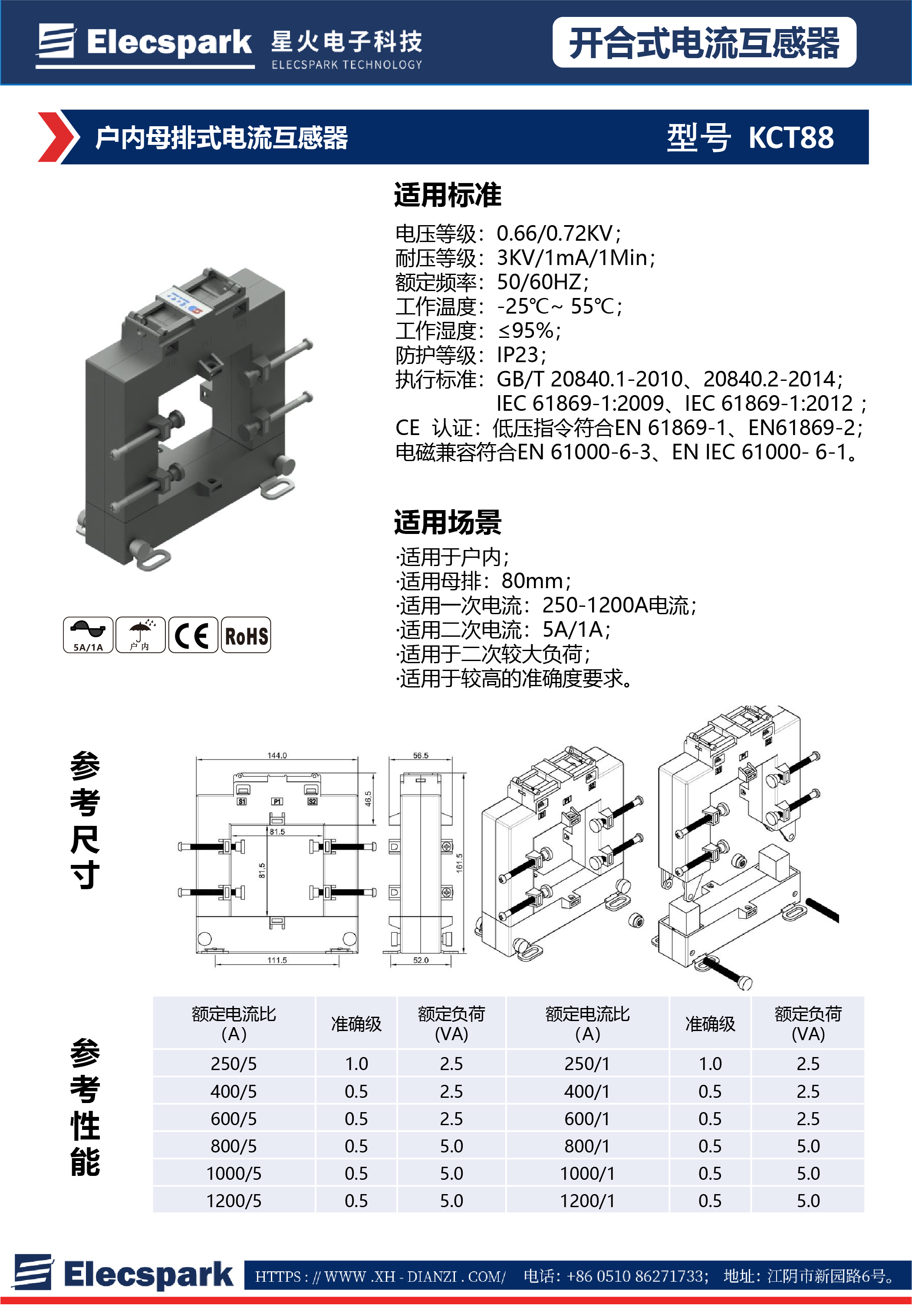 戶內(nèi)母排式電流互感器KCT88
