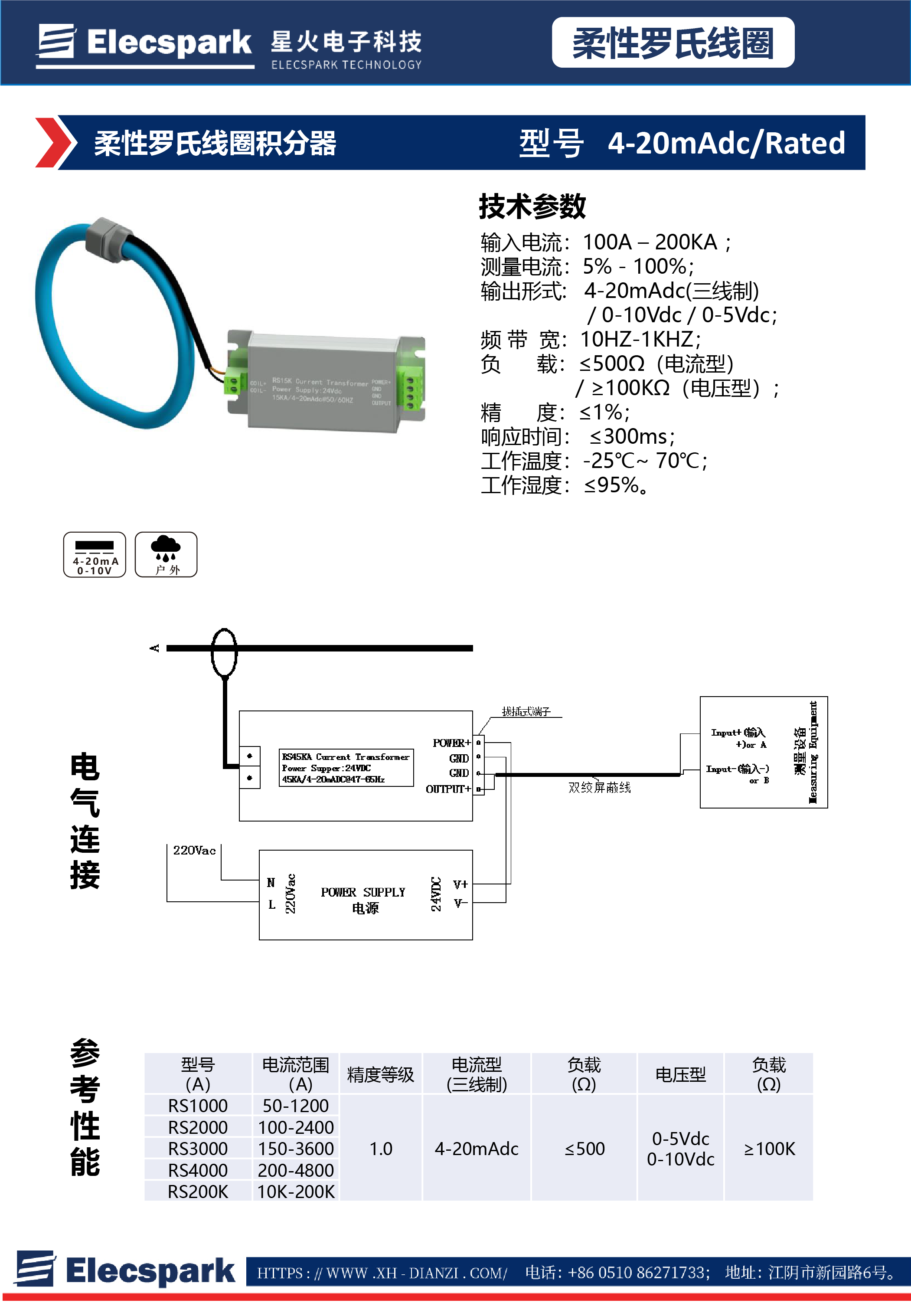 柔性羅氏線圈積分器4-20mAdc/Rated